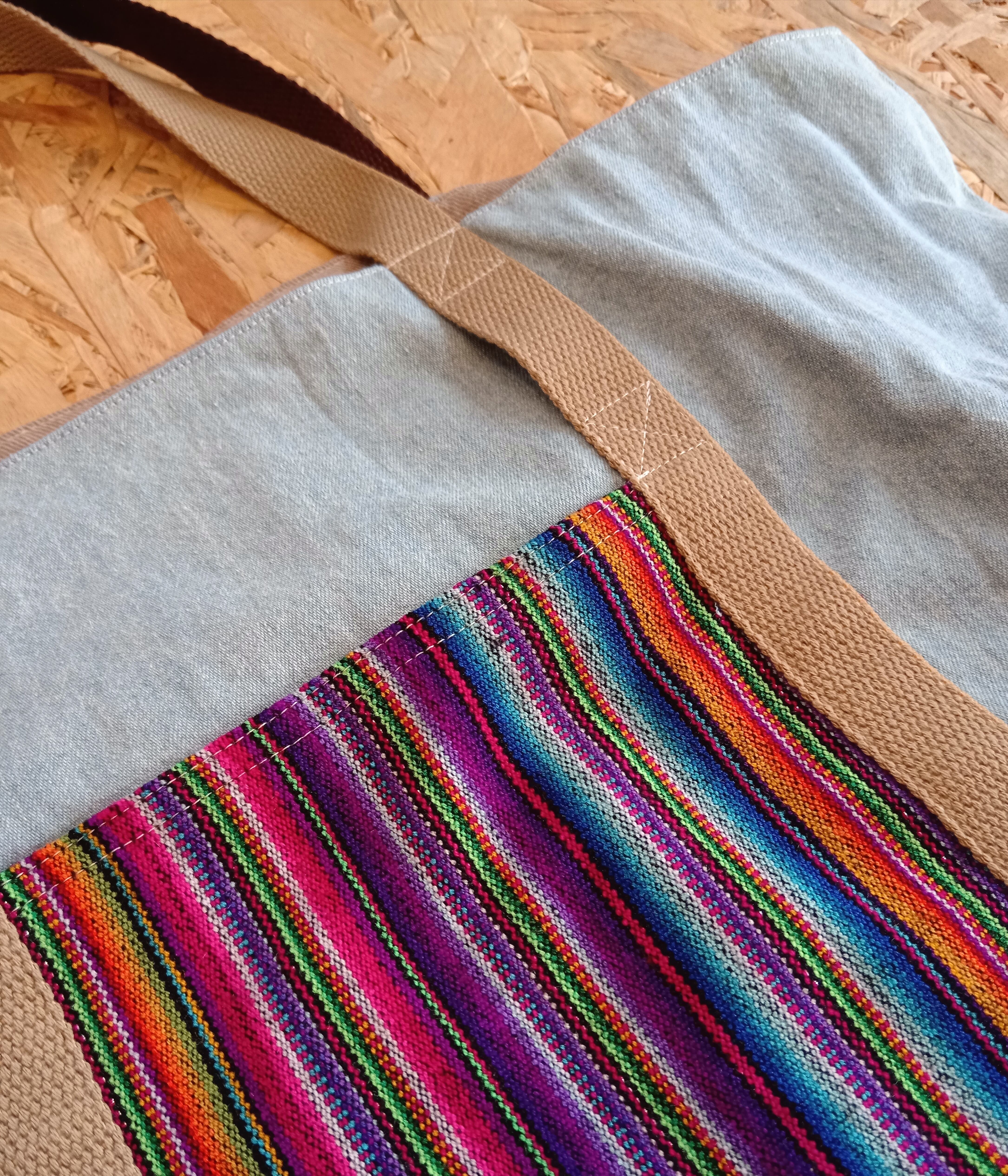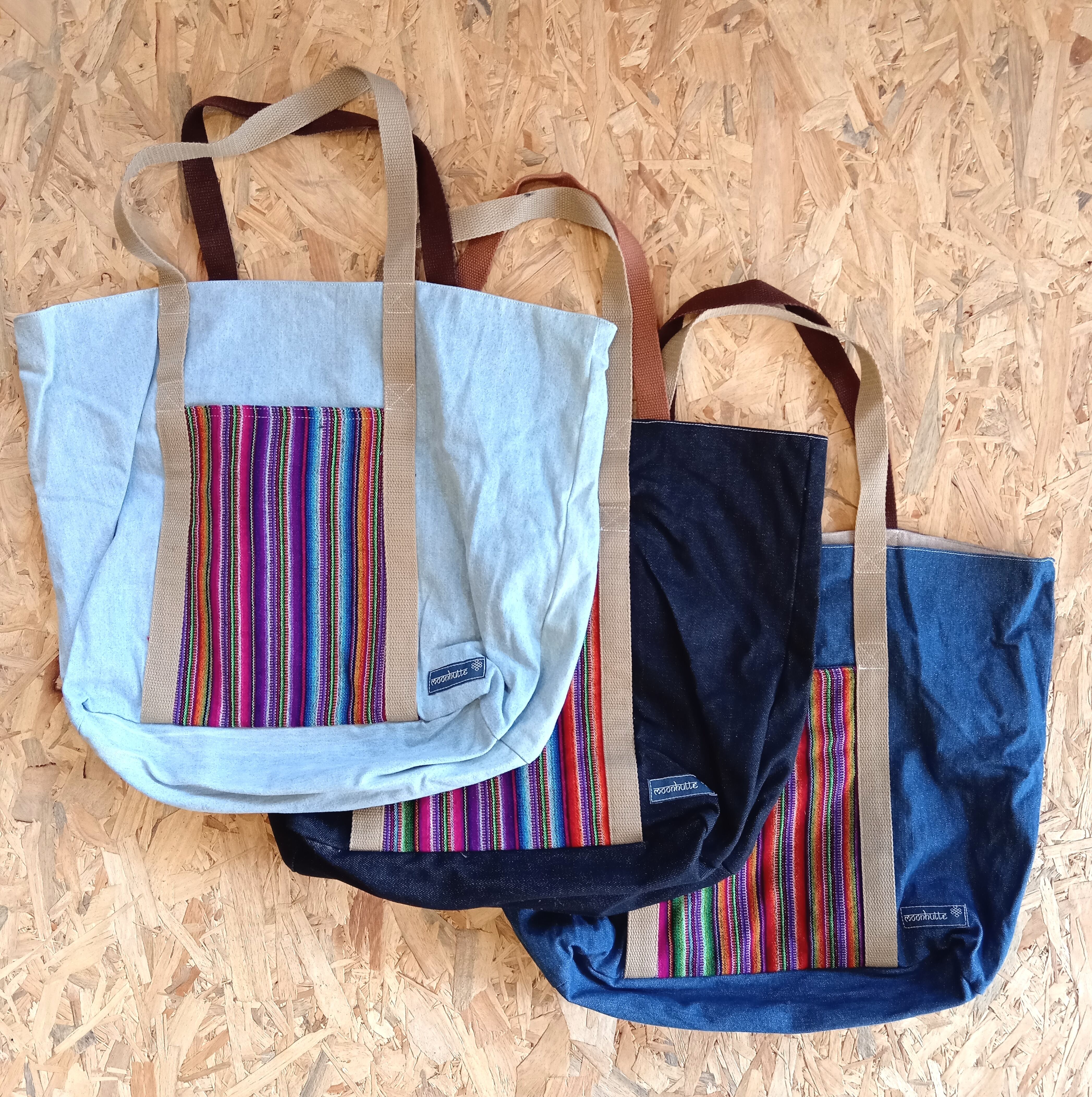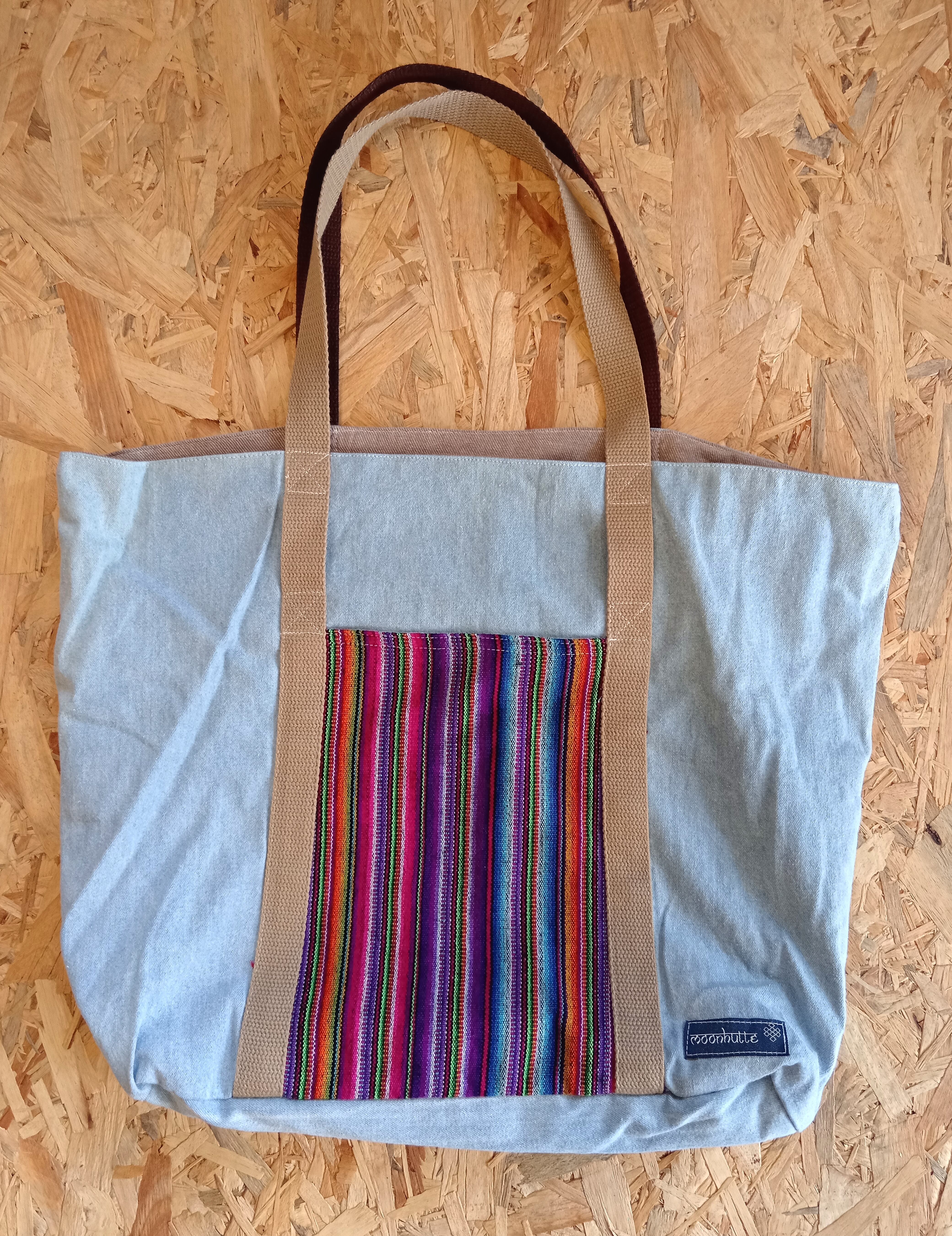 Tote bag ~ Denim x Tribe "PERU" Washed Blue