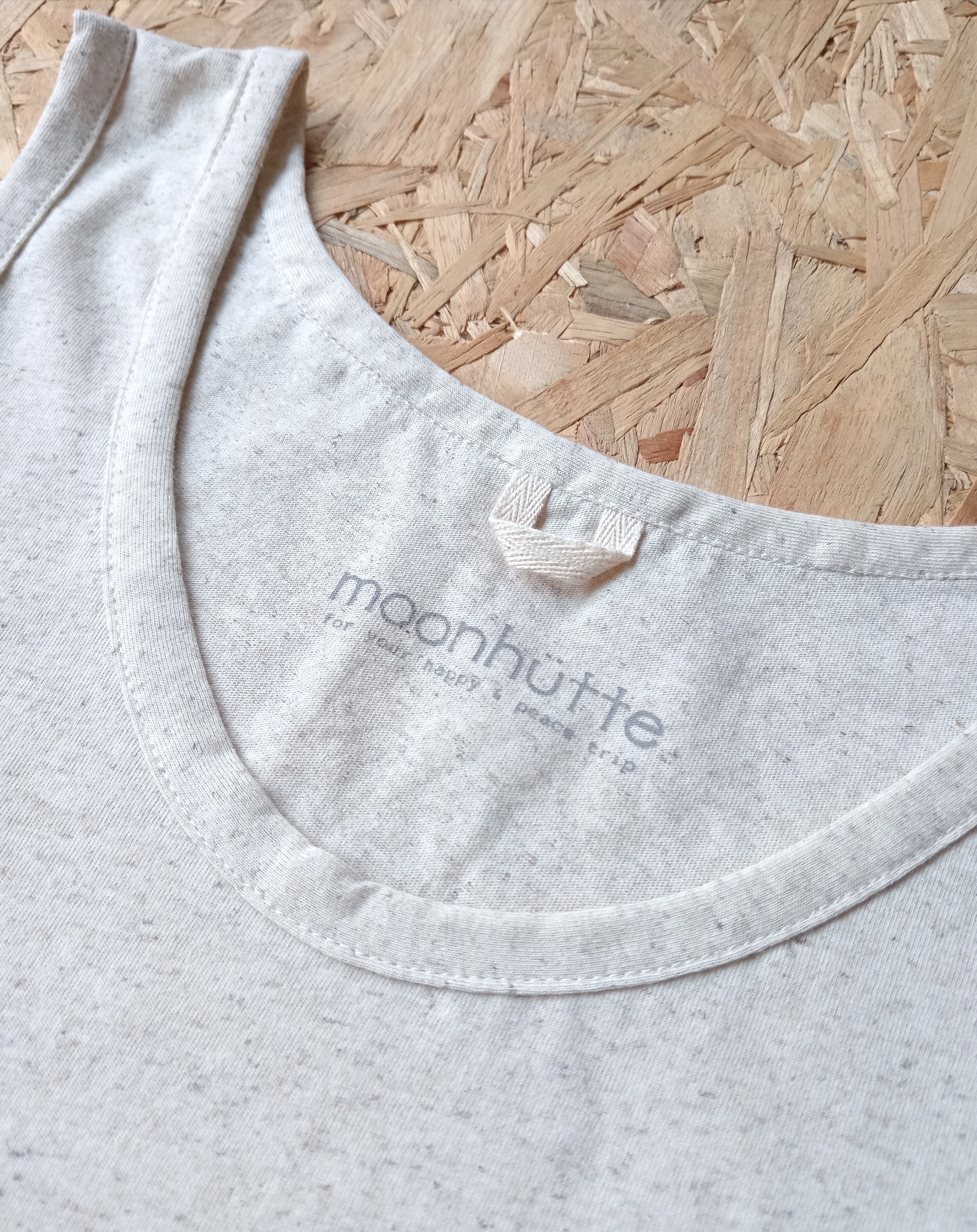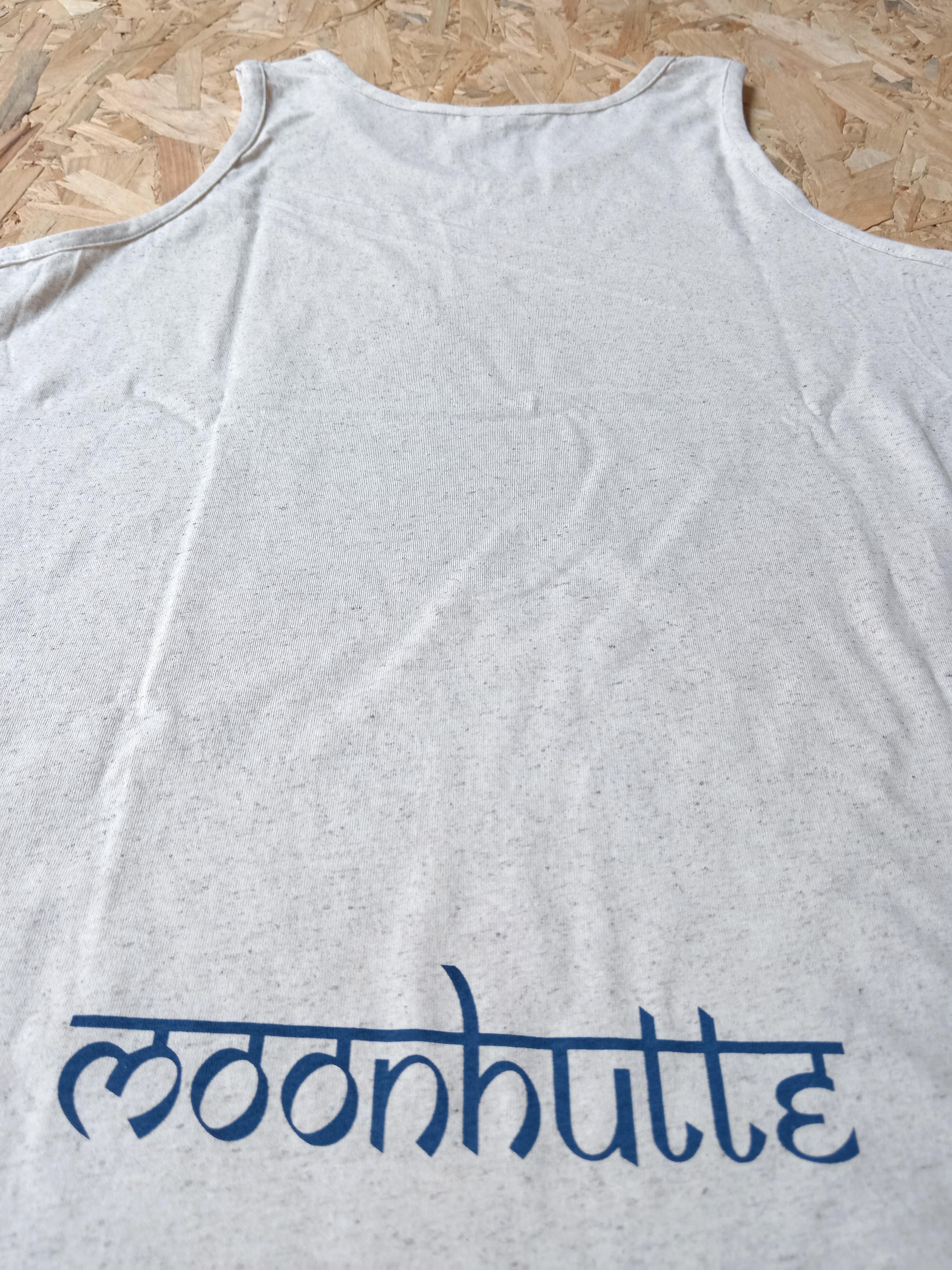 背面裾部にサンスクリット文字にデザインされたmoonhutteロゴがプリントされています。